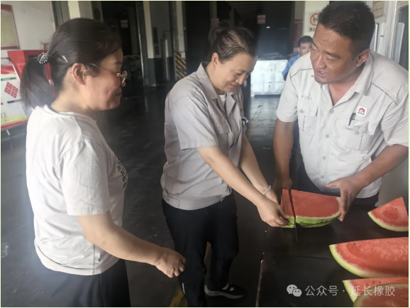 點擊量:178近日,陜西地區(qū)持續(xù)高溫,戶外溫度直逼 40℃。在這樣的悶熱天氣中,延長橡膠公司的生產(chǎn)一線依舊呈現(xiàn)出一片繁忙的景象。原材料庫的工作人員們始終堅守在庫區(qū)的各個崗位上,全力保障全鋼、半鋼輪胎的生產(chǎn)供應(yīng),采供部更是針對性地開展了一系列 “送清涼” 活動,為一線人員注入夏日里的清涼動力。